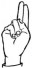 На ћирилици написано НЕНАД КОМАРНИЧКИ састоји се из 15 слова [?]. Исписано ћириличном једноручном азбуком за глувонеме:
